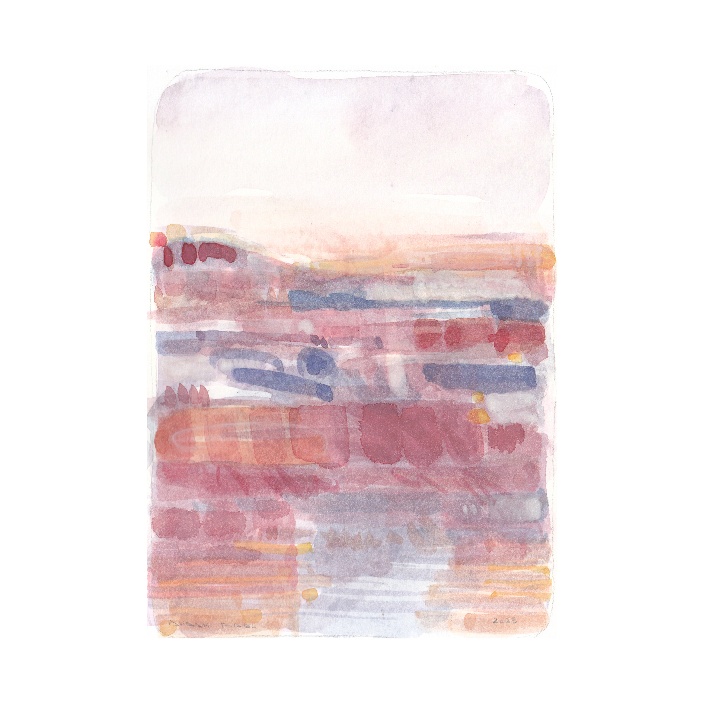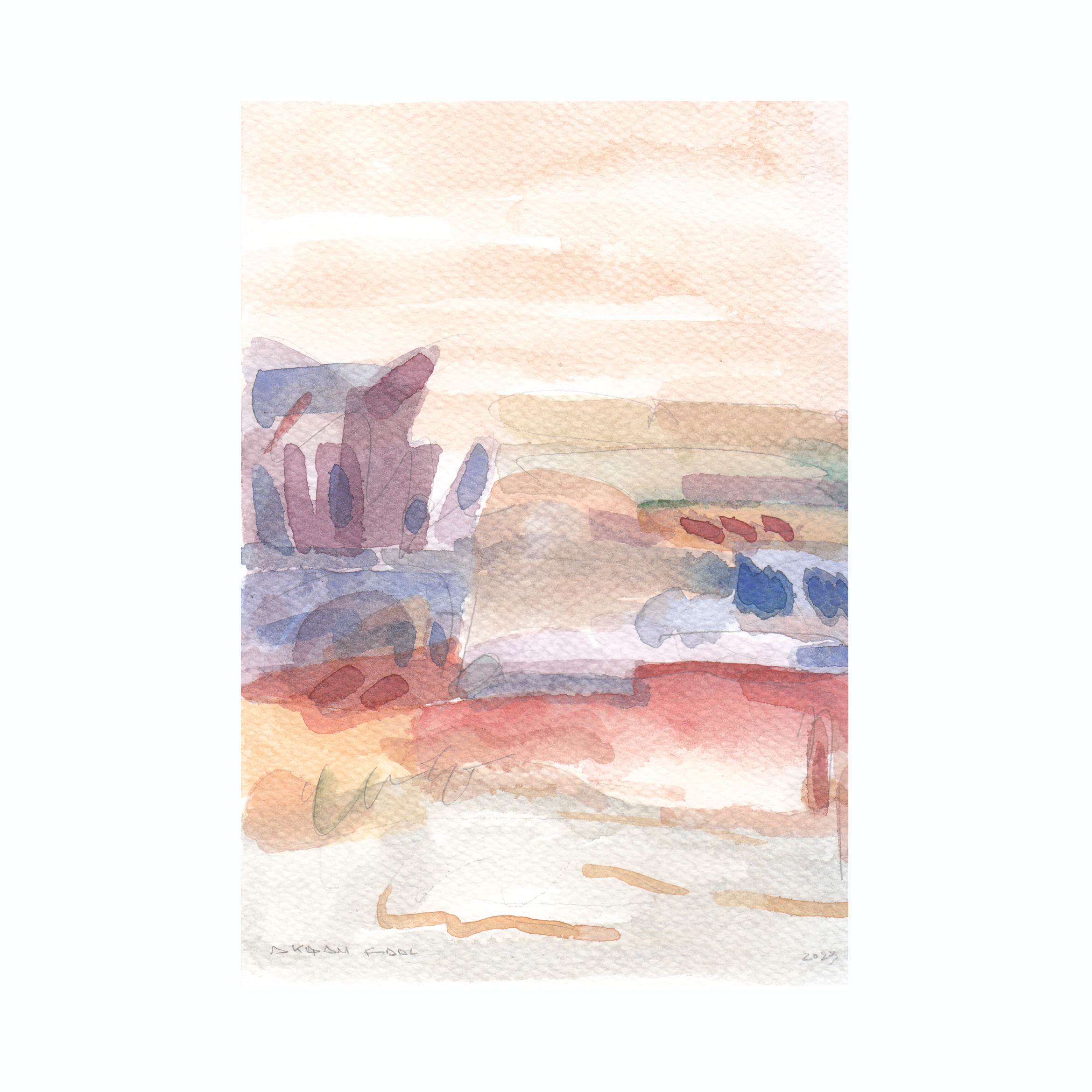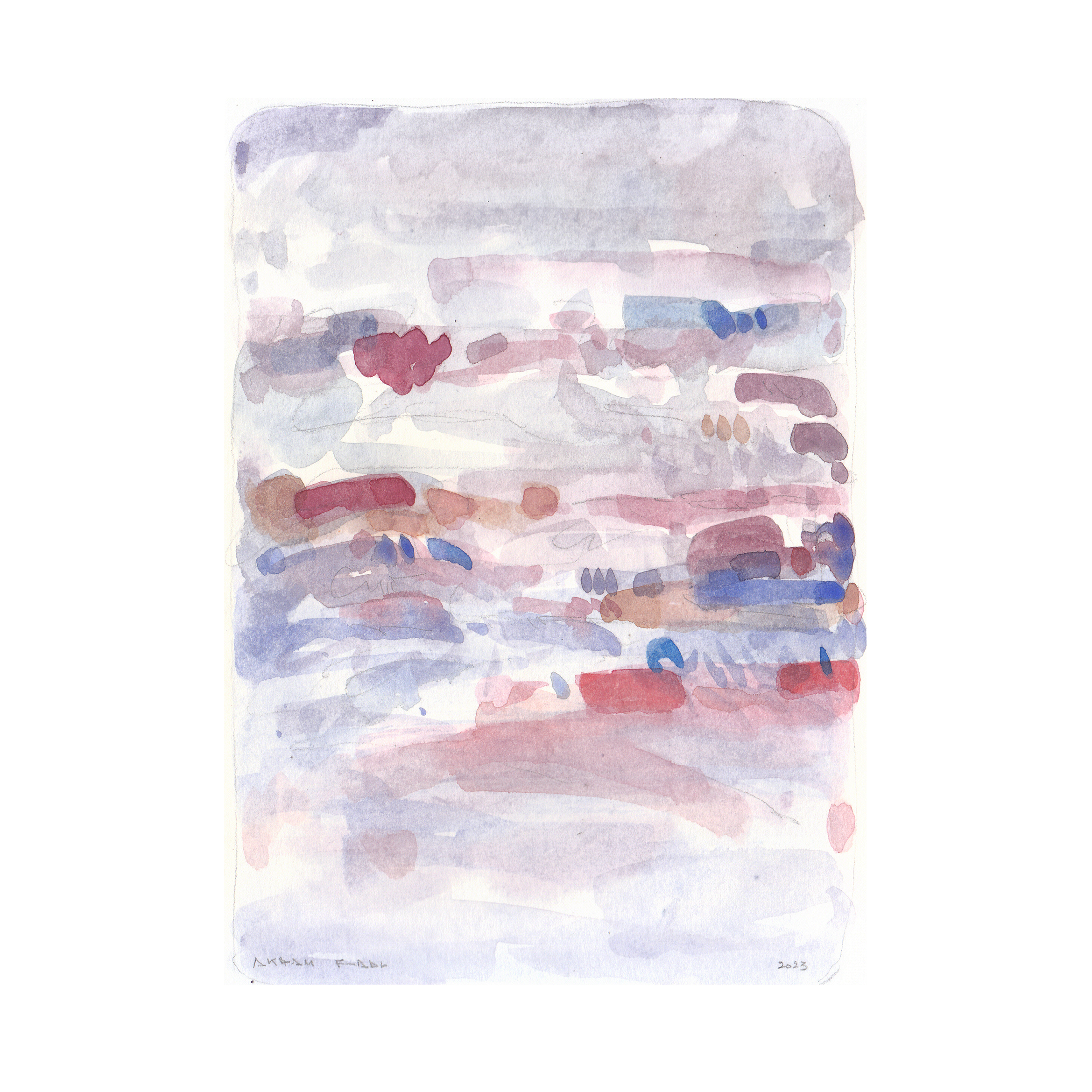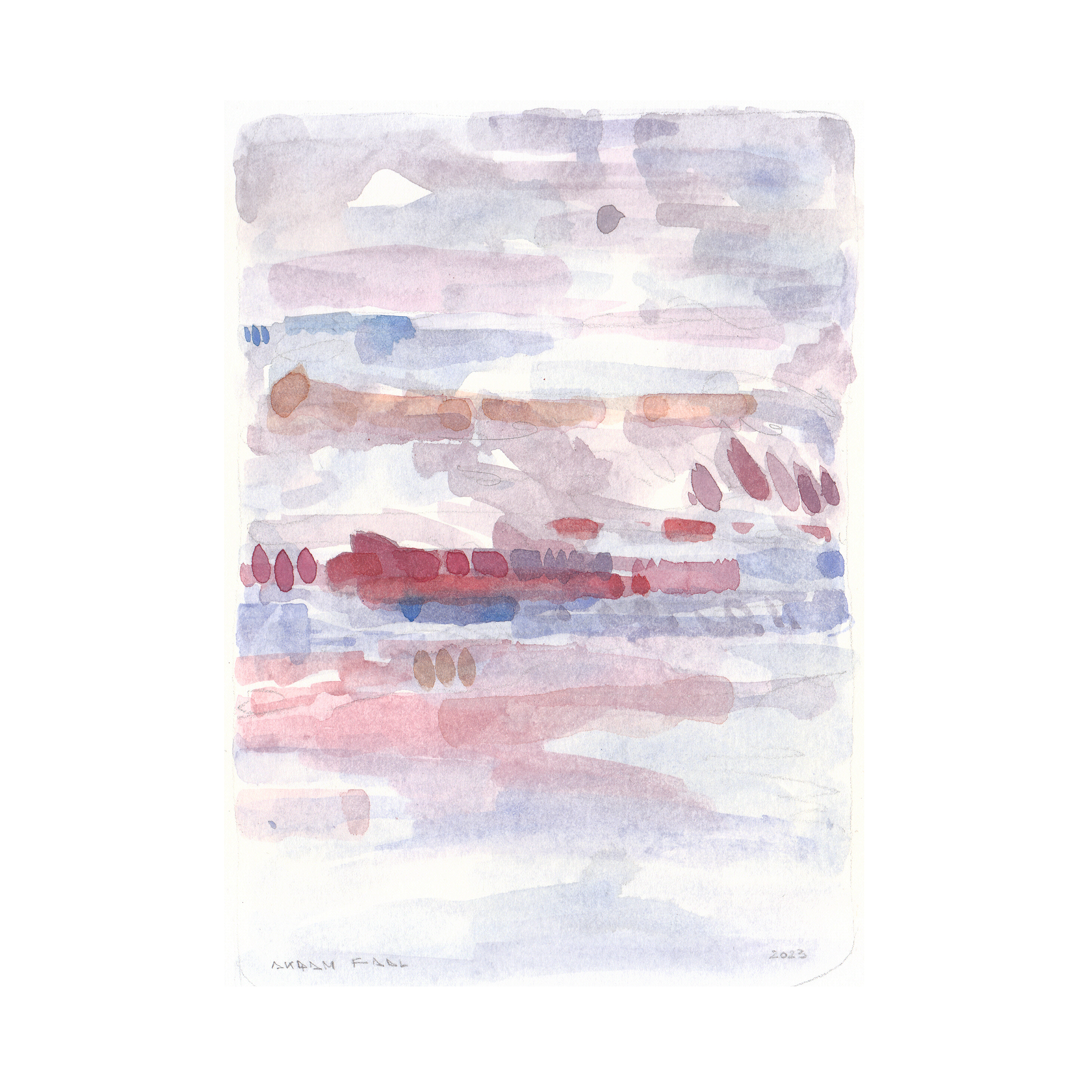 This body of work focuses specifically on small format watercolor paintings inspired entirely by my imagination. The process involves allowing my mind to wander free from constraints of realism, letting thoughts flow unfiltered onto paper.