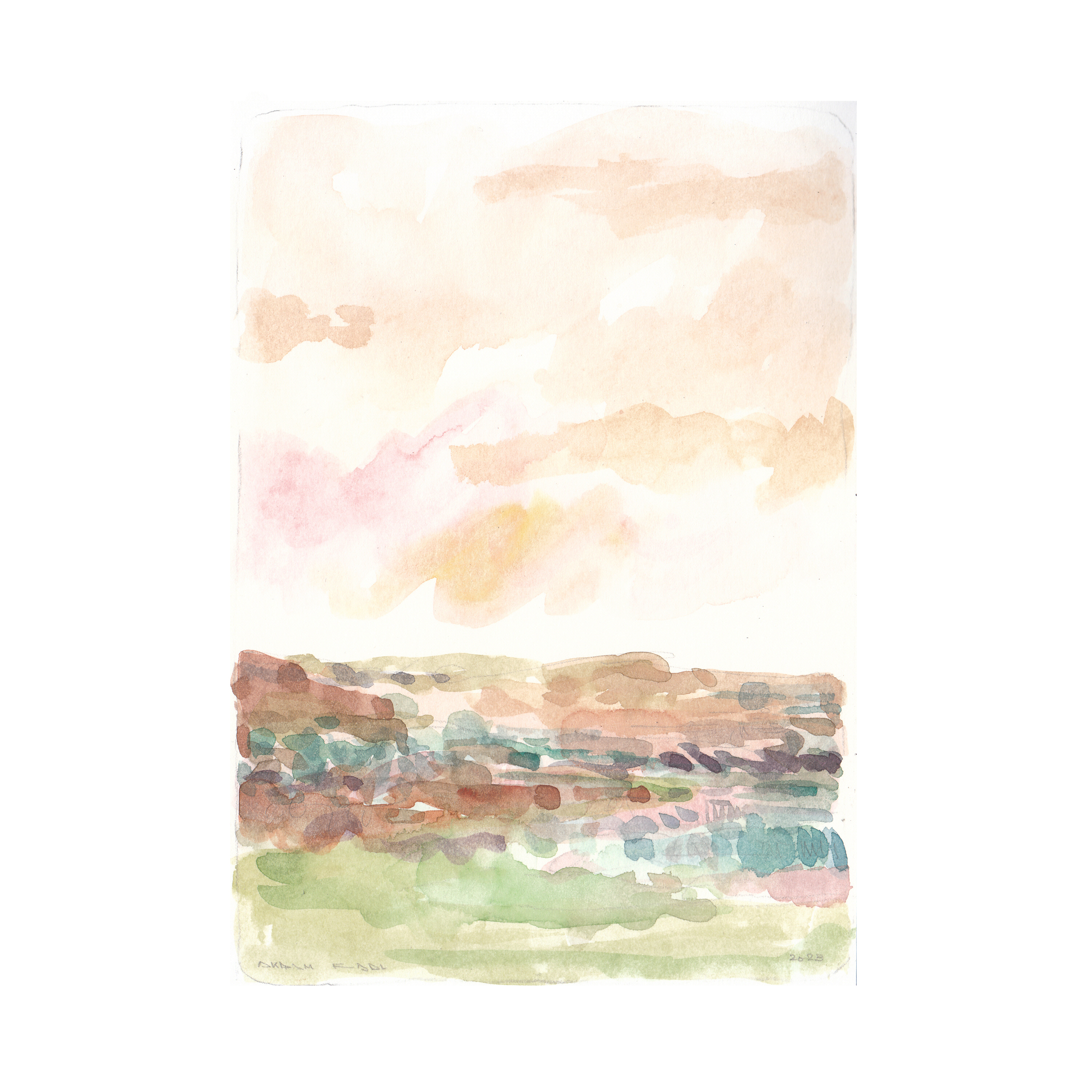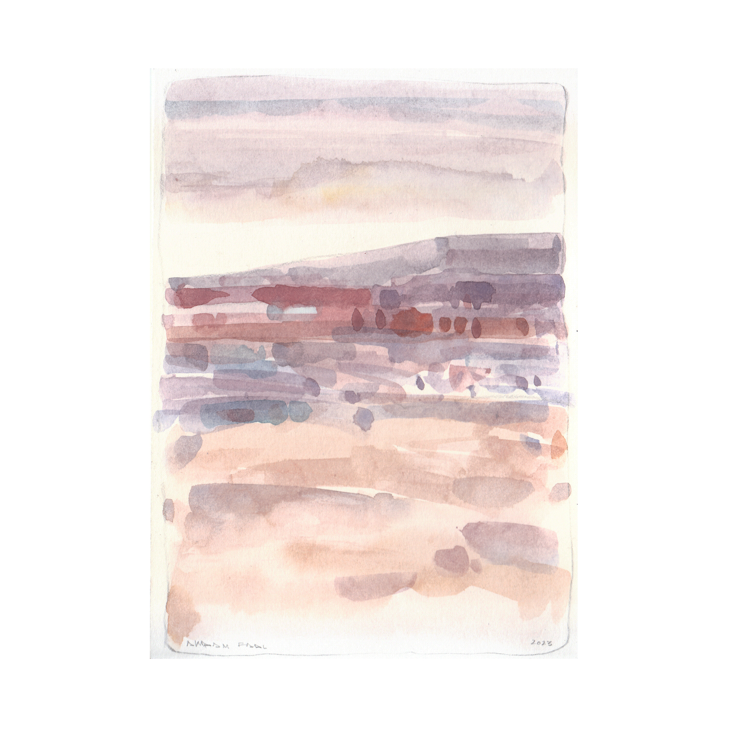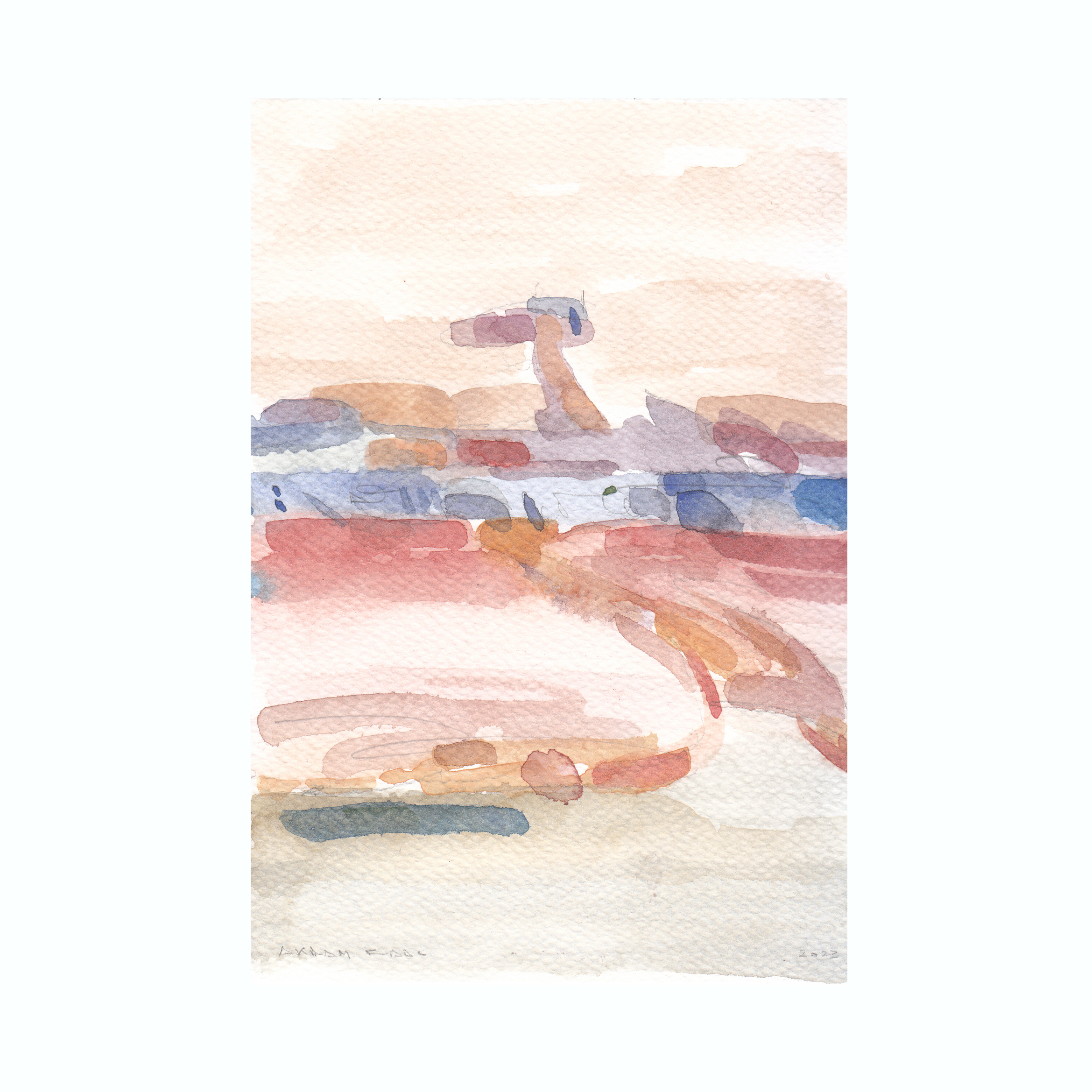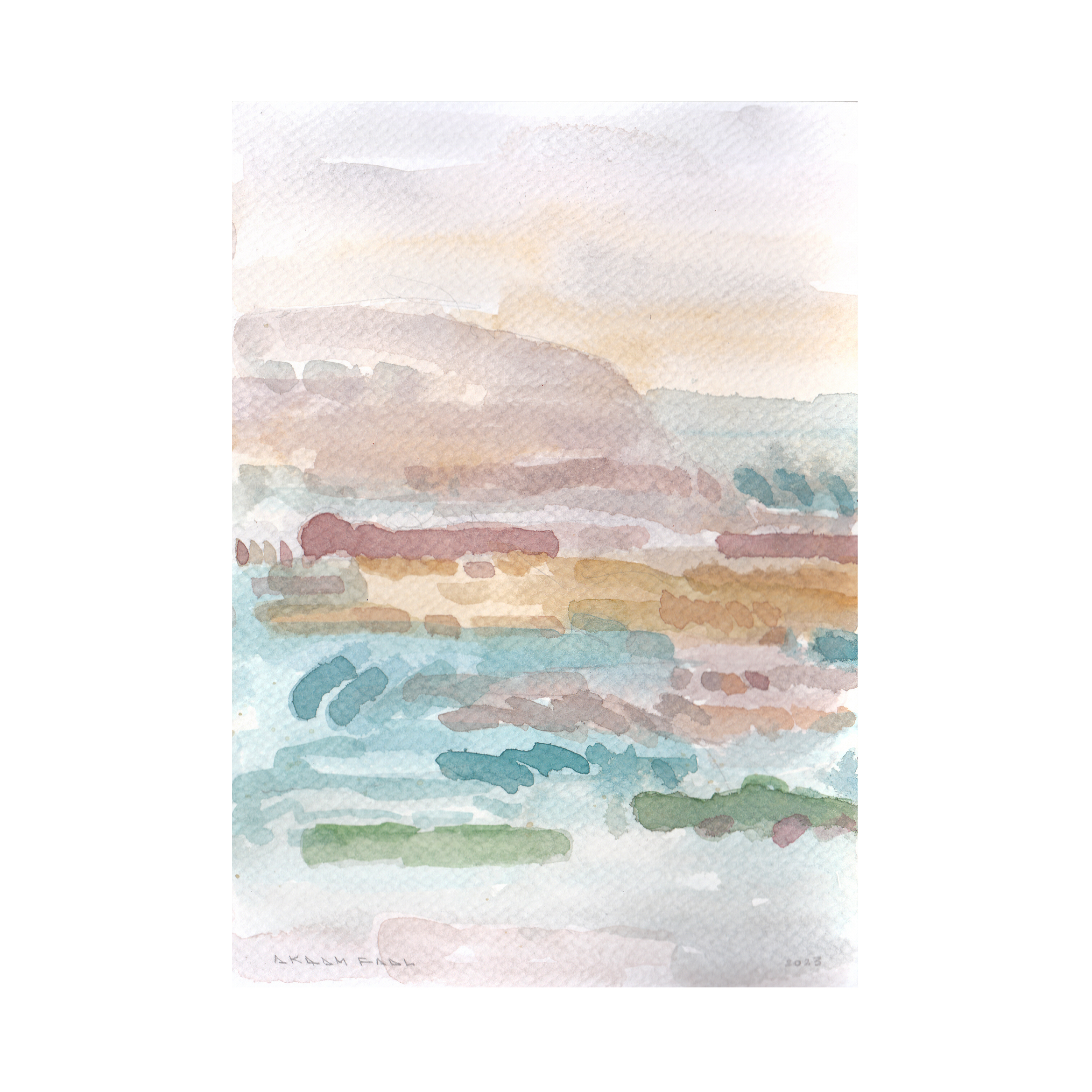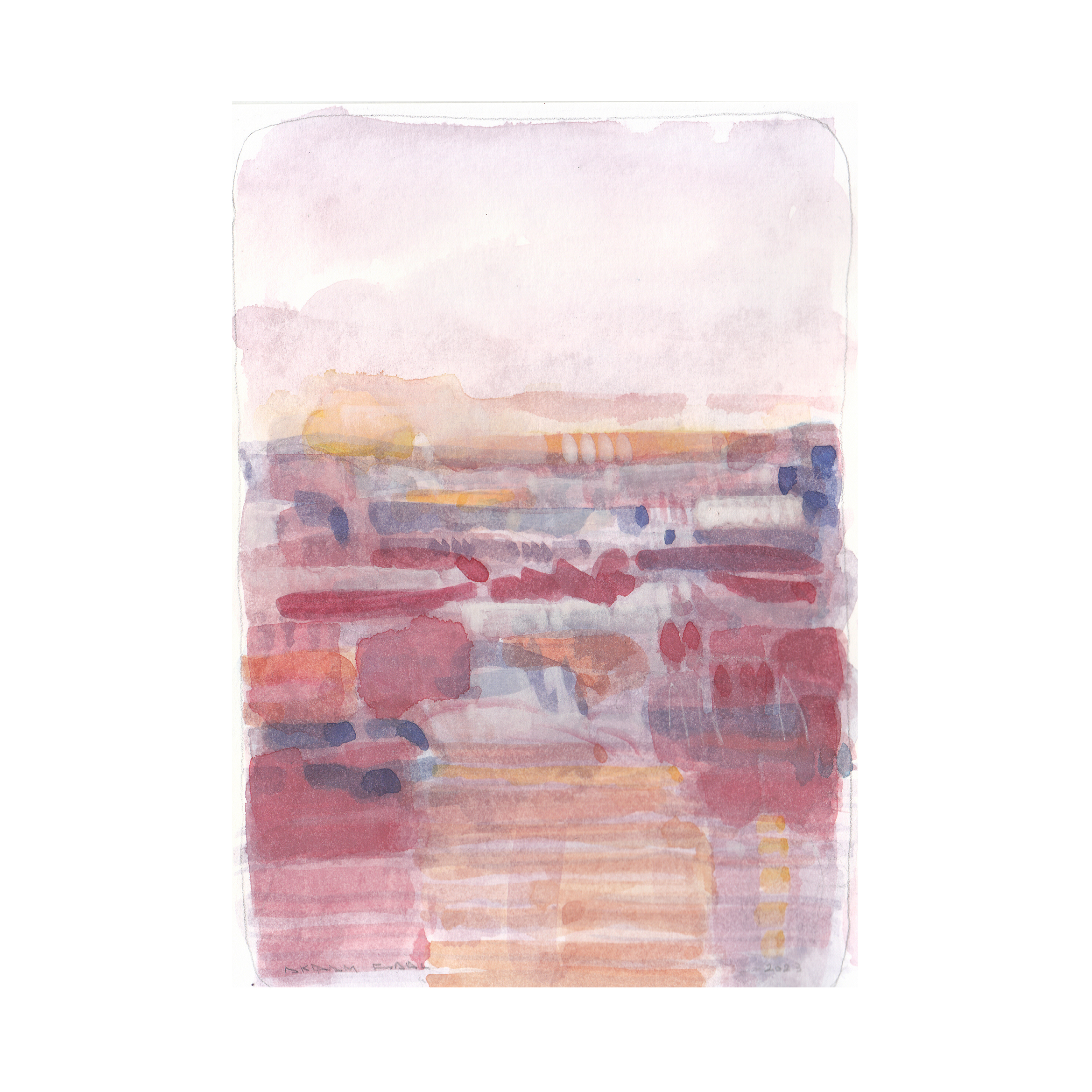 This body of work focuses specifically on small format watercolor paintings inspired entirely by my imagination. The process involves allowing my mind to wander free from constraints of realism, letting thoughts flow unfiltered onto paper.